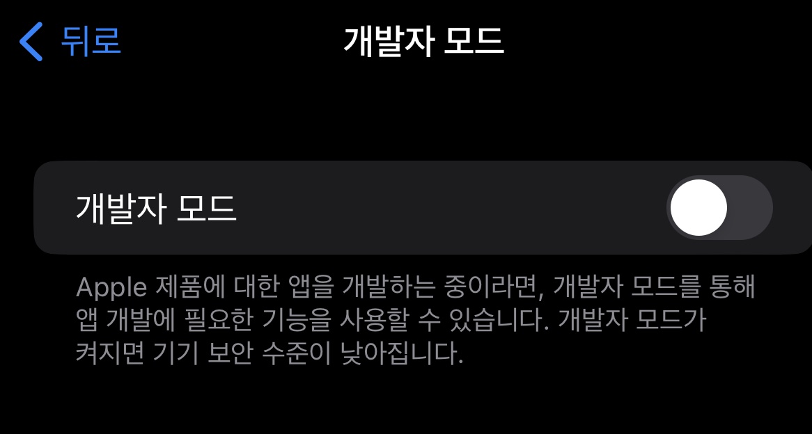 그런 경우 아이폰/아이패드 기기에서 개발자 모드를 활성화 해줘야 한다.