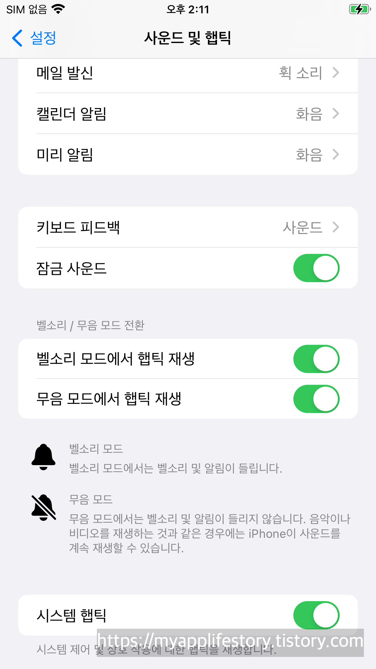 사운드 및 햅틱 - 키보드 피드백 - 햅틱